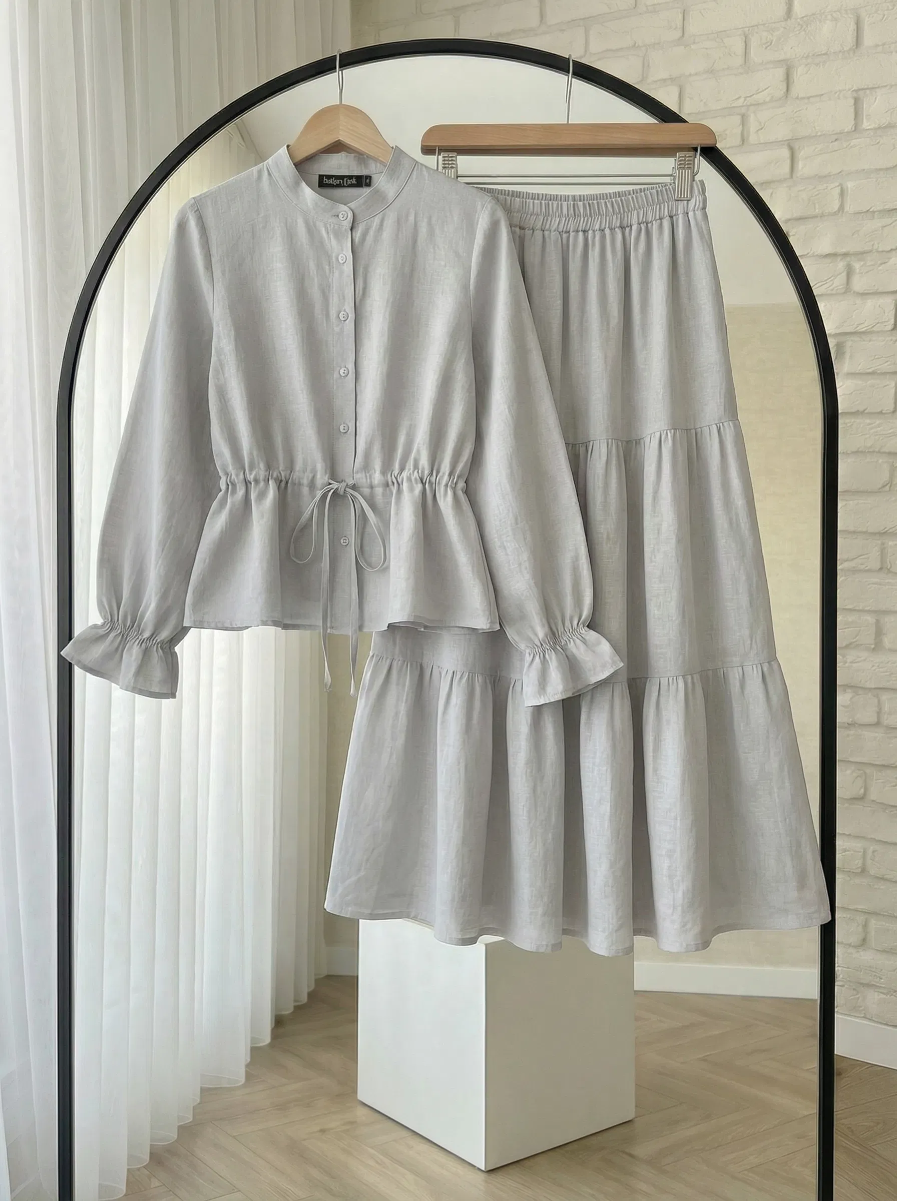 Büzgü Keten Takım- Acık Gri