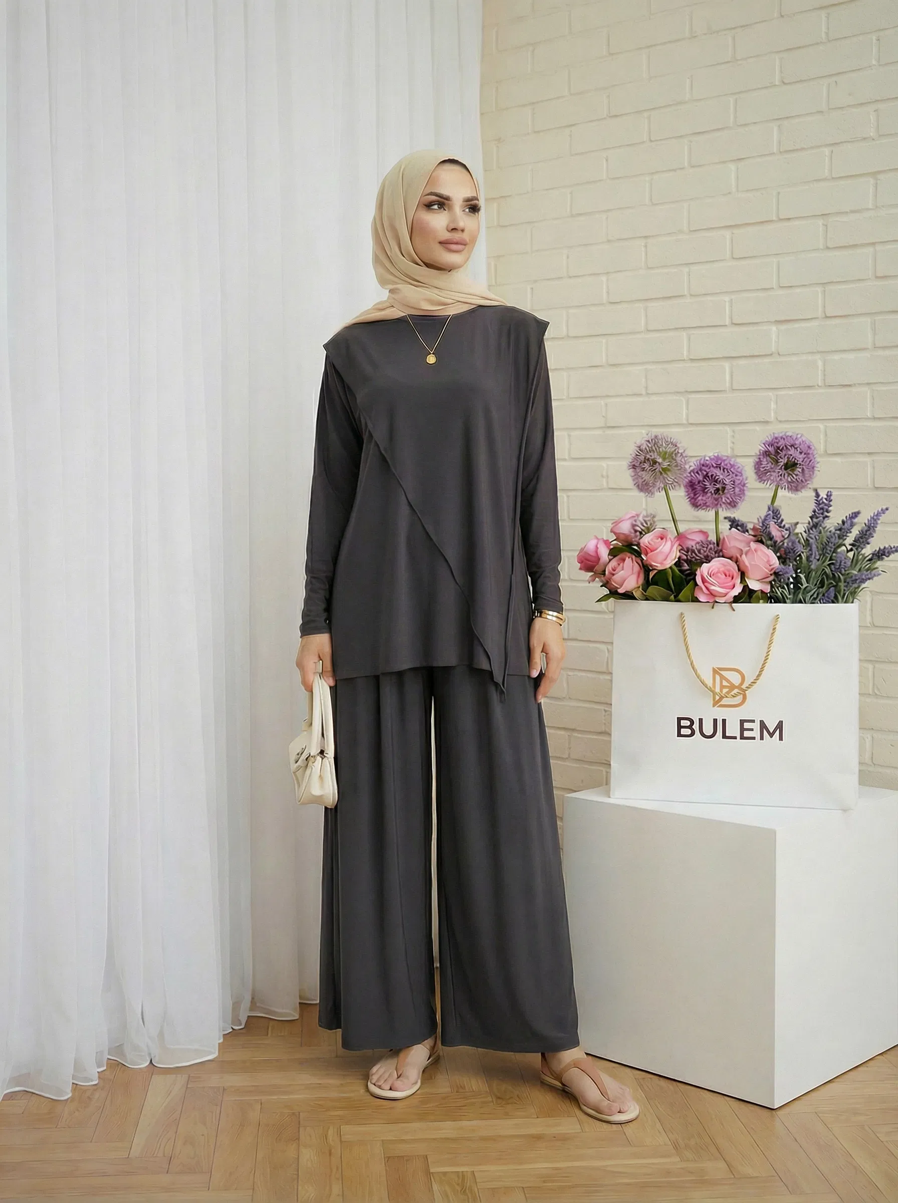 Günlük şıklığın vazgeçilmezi İkra İkili Takım, sandy kumaşı sayesinde hem konforu hem zarafeti bir araya getiriyor. Hafif dokusu ve dökümlü yapısıyla her mevsim rahatlıkla tercih edebilirsiniz.
