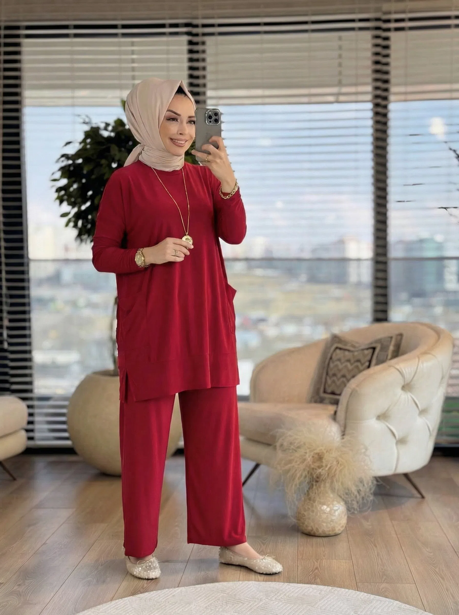 Günlük şıklığın vazgeçilmezi İkra İkili Takım, sandy kumaşı sayesinde hem konforu hem zarafeti bir araya getiriyor. Hafif dokusu ve dökümlü yapısıyla her mevsim rahatlıkla tercih edebilirsiniz.