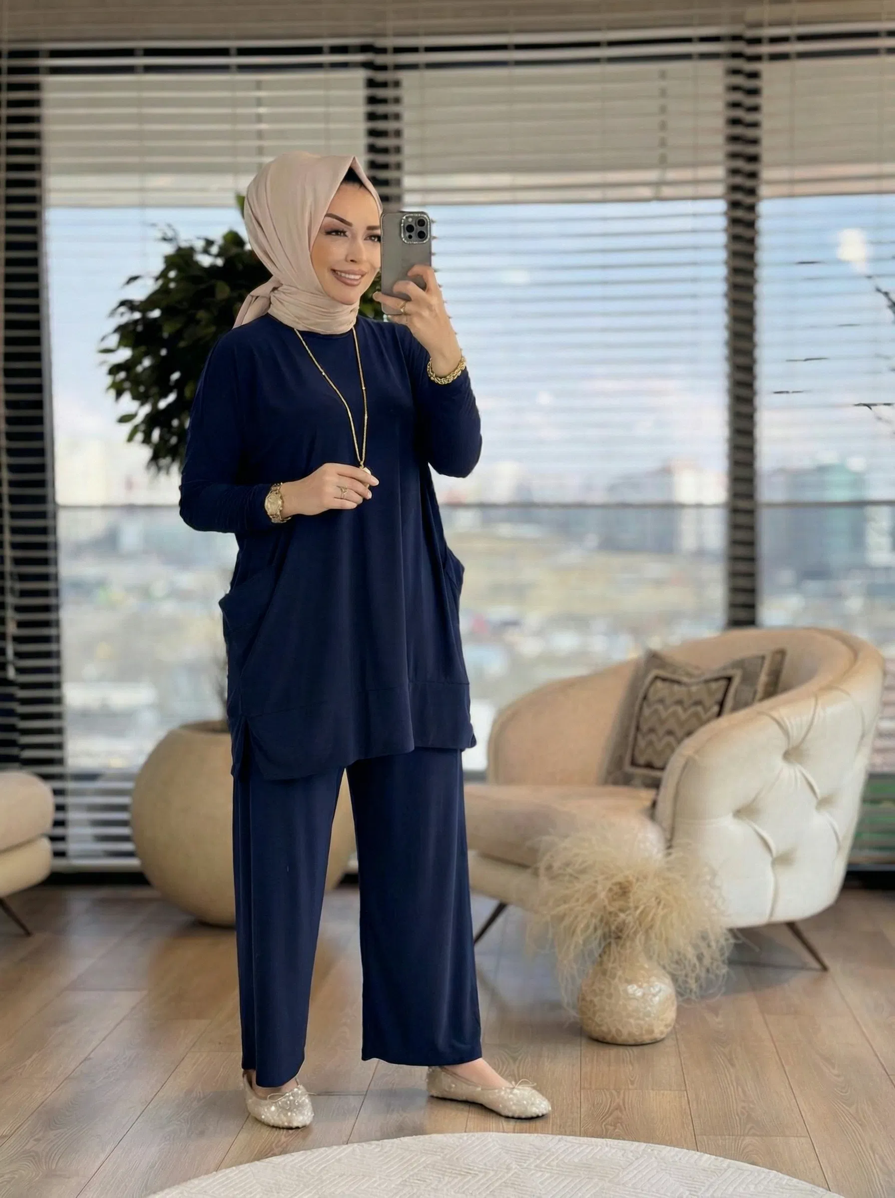 Günlük şıklığın vazgeçilmezi İkra İkili Takım, sandy kumaşı sayesinde hem konforu hem zarafeti bir araya getiriyor. Hafif dokusu ve dökümlü yapısıyla her mevsim rahatlıkla tercih edebilirsiniz.