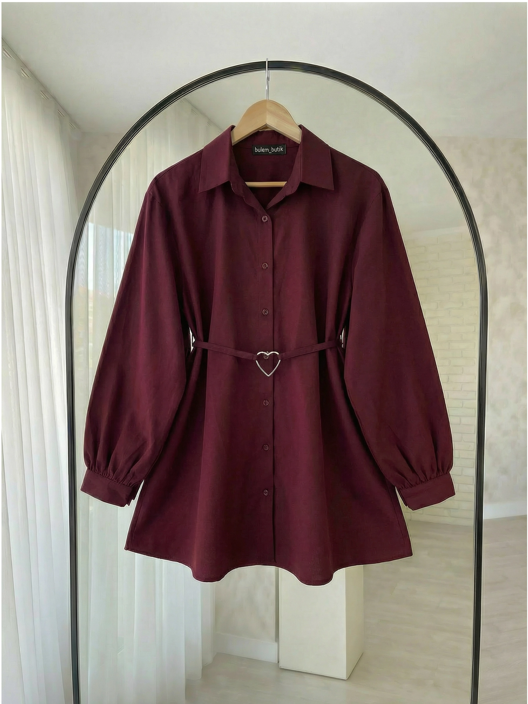 Kalp Kemerli Poplin Gömlek- Bordo