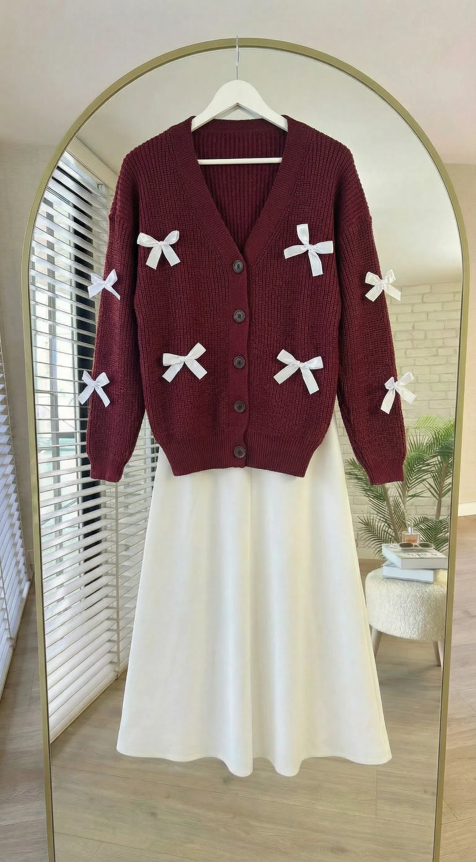 Kurdeleli Triko Hırka- Bordo