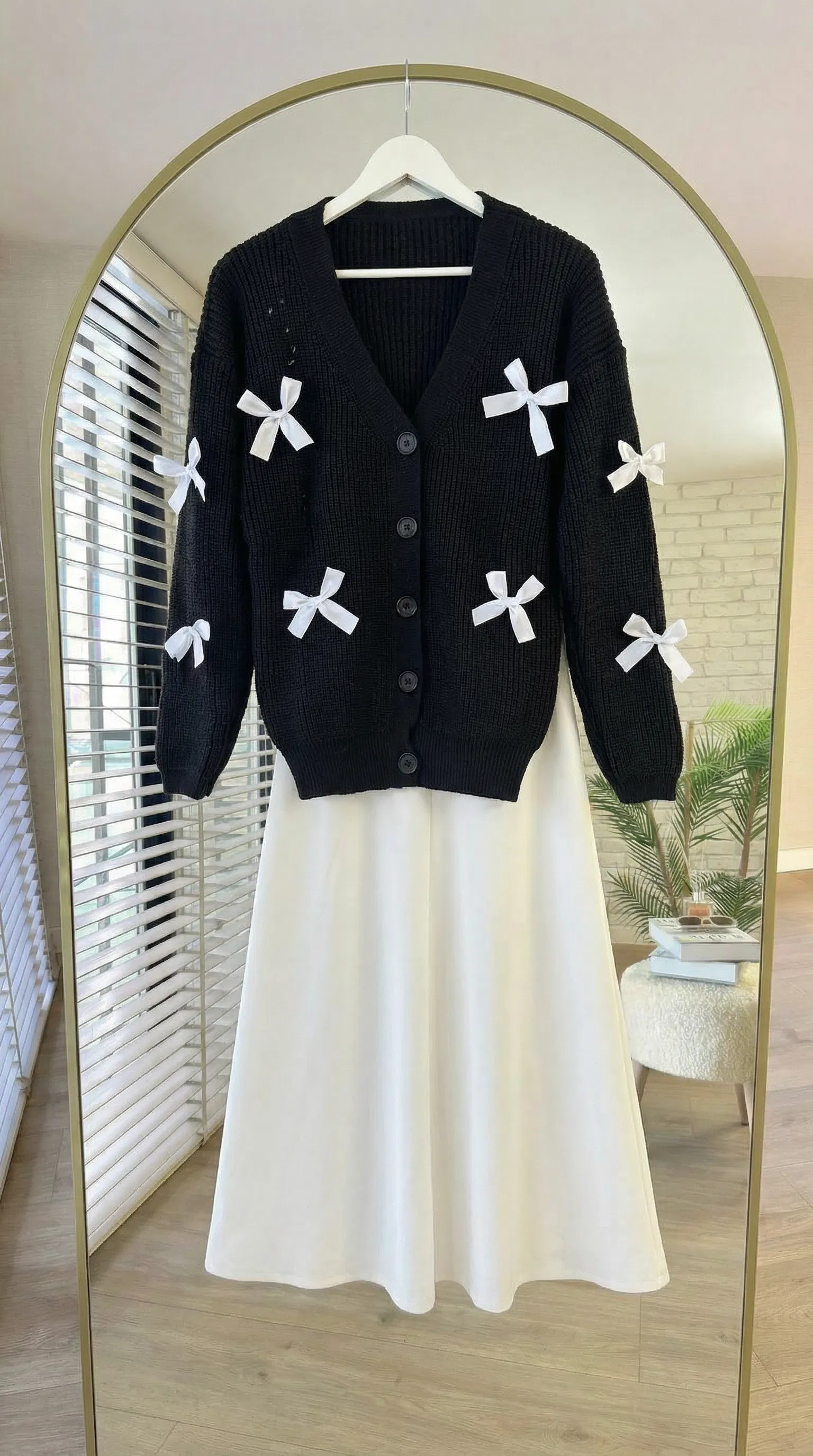 Kurdeleli Triko Hırka- Siyah