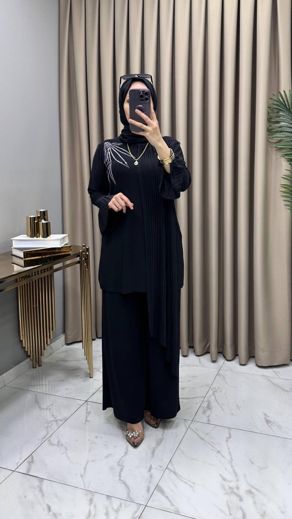 Tuniğe Bitişik piliseli yan boy 120