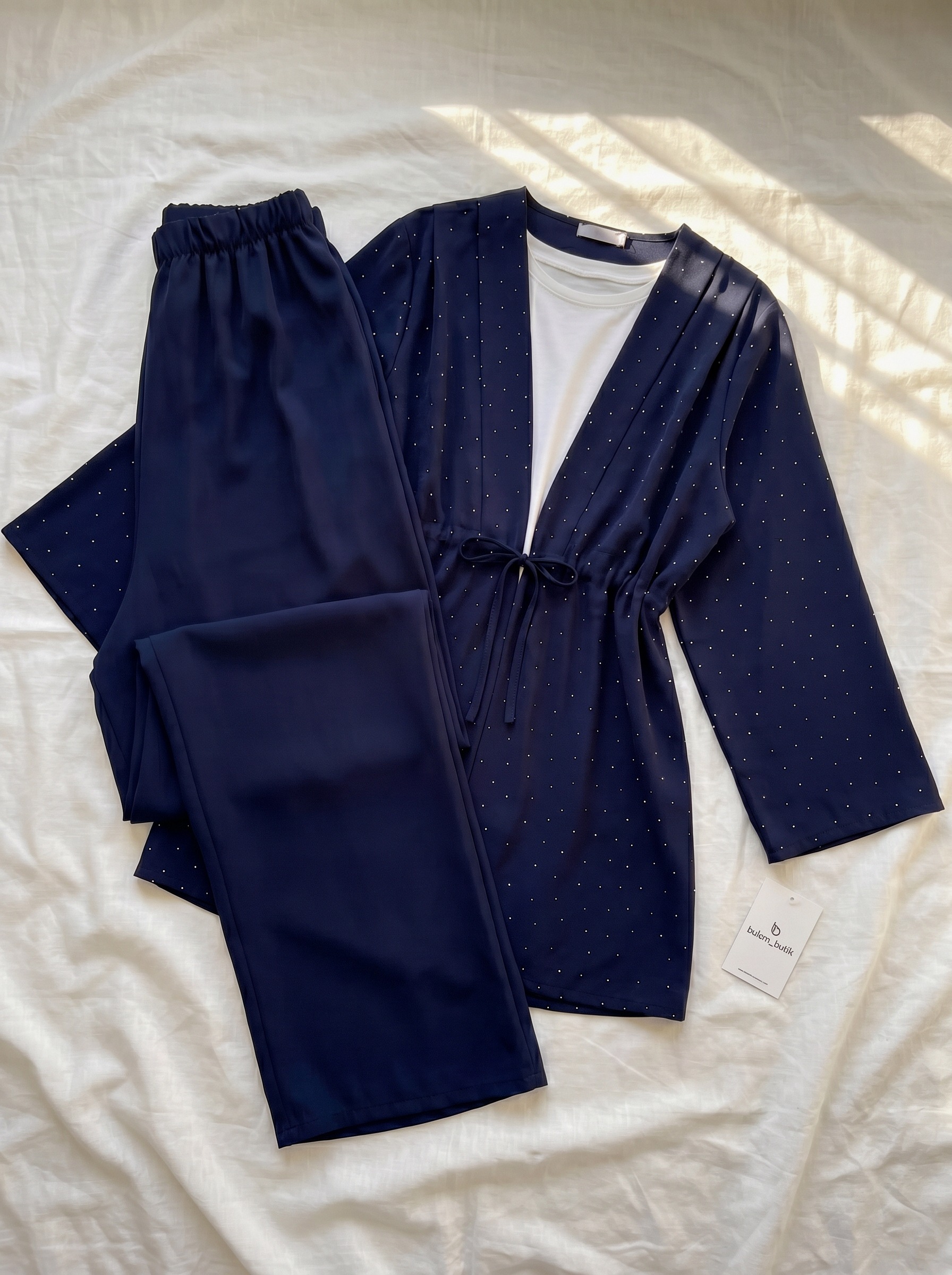 Detay: Taş detaylı üst ve pantolon